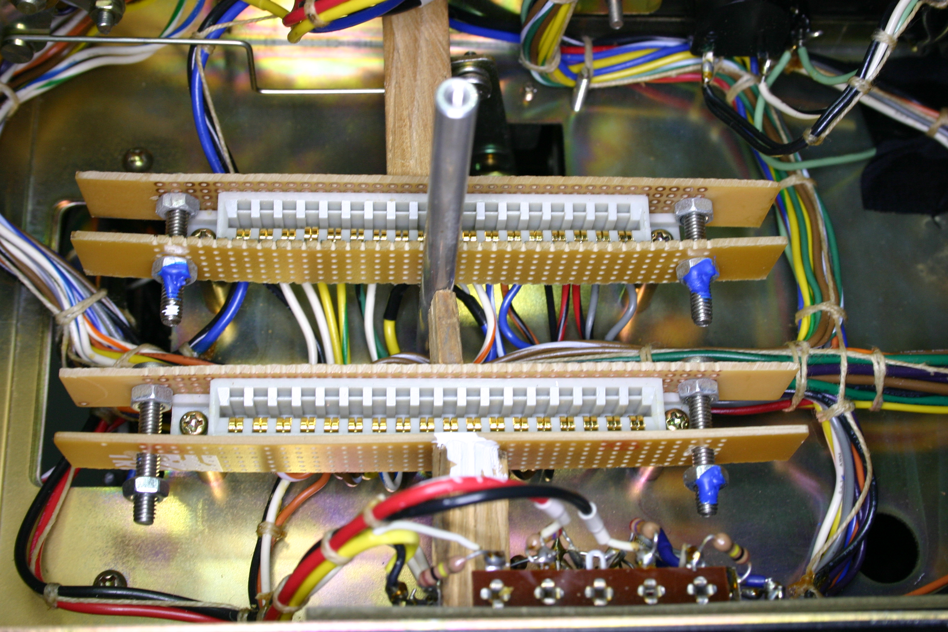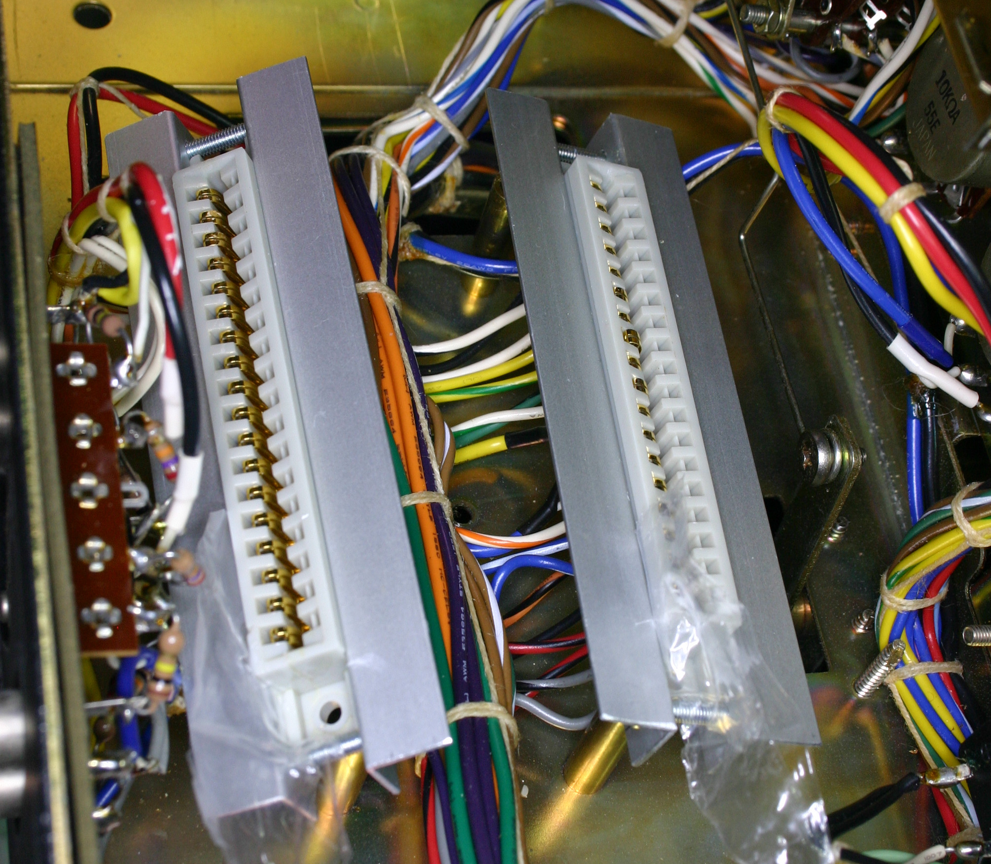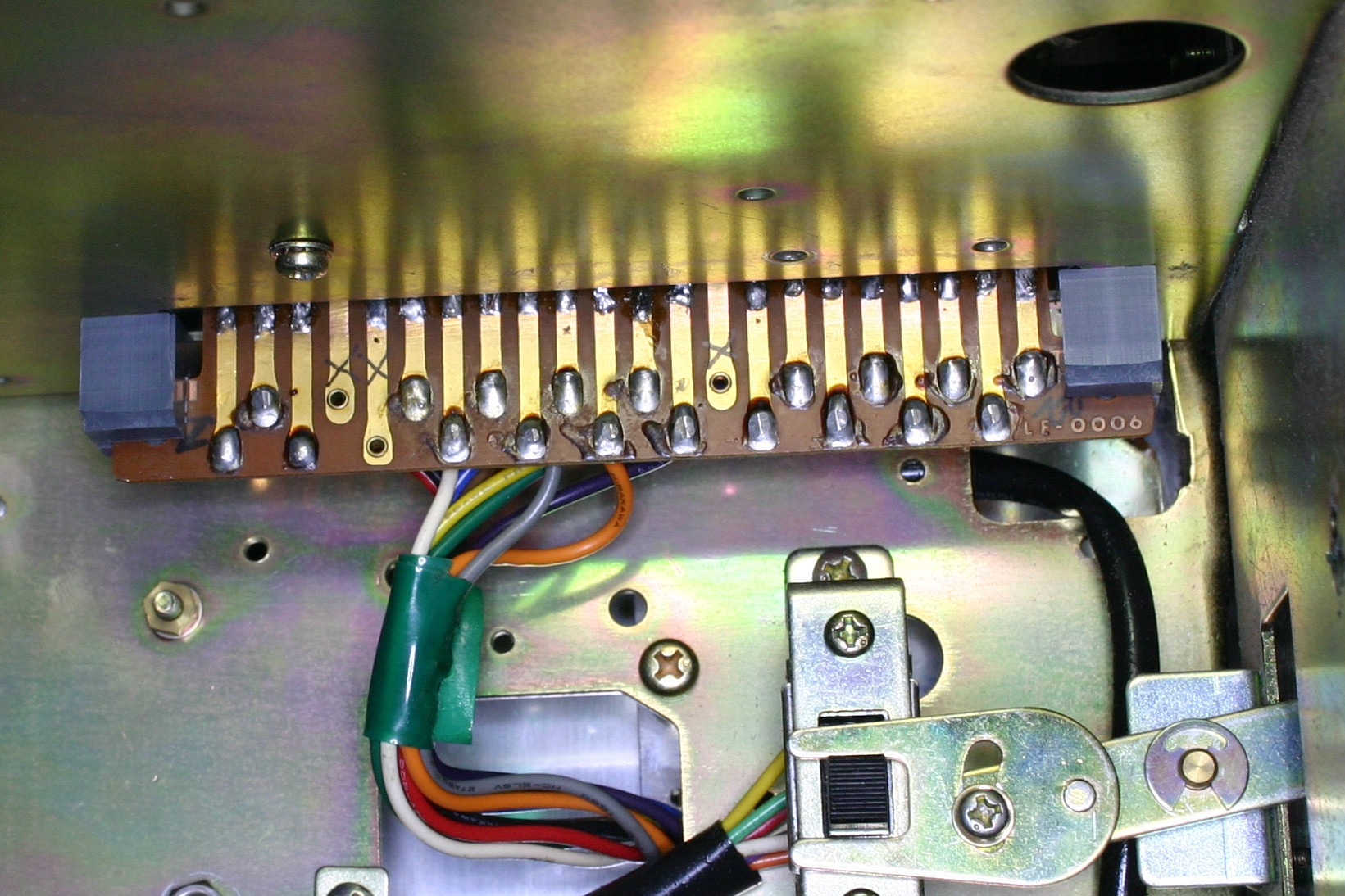 Dan de printconnectors voor de Rec en Weergave printen. Die zitten wel nog in de connectors. De Playback connectors zijn gescheurd en gesteund met een strookje gaatjesprint. De Rec connectors zijn nog heel.