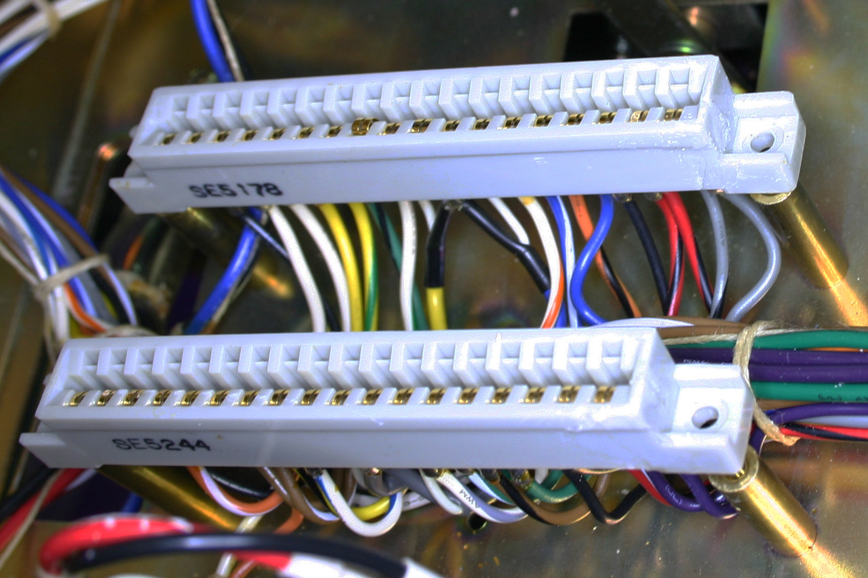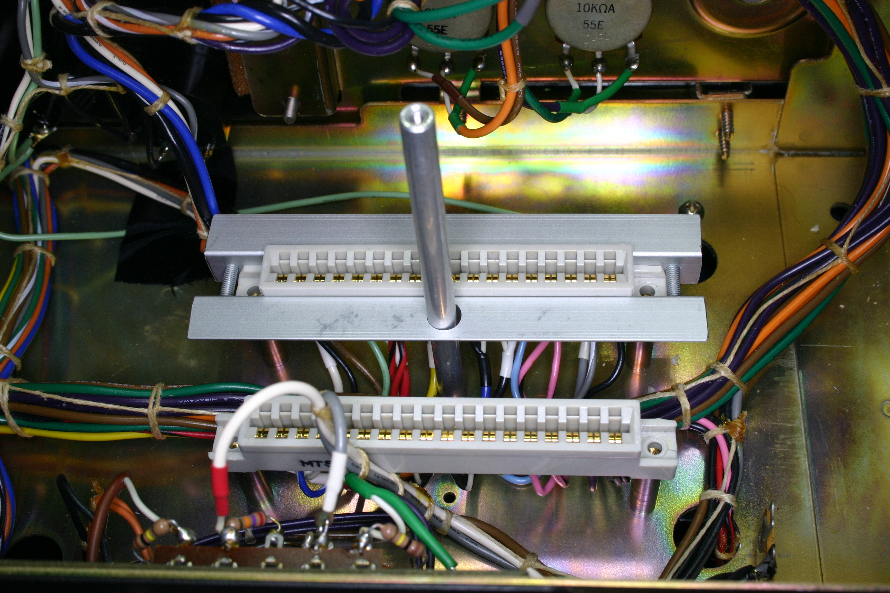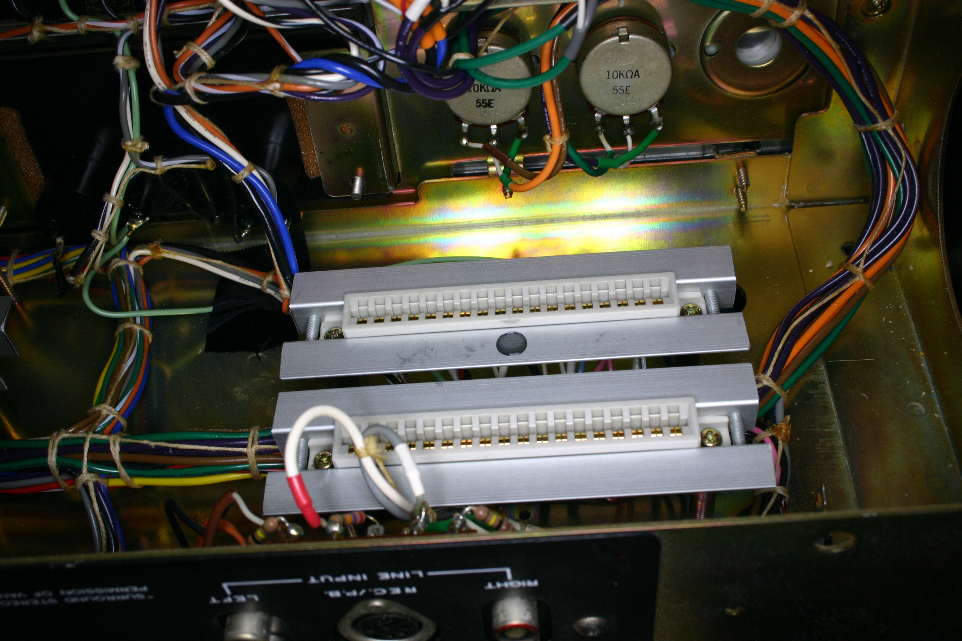 Dan de printconnectors voor de Rec en Weergave printen. Die zitten wel nog in de connectors. De Playback connectors zijn gescheurd en gesteund met een strookje gaatjesprint. De Rec connectors zijn nog heel.