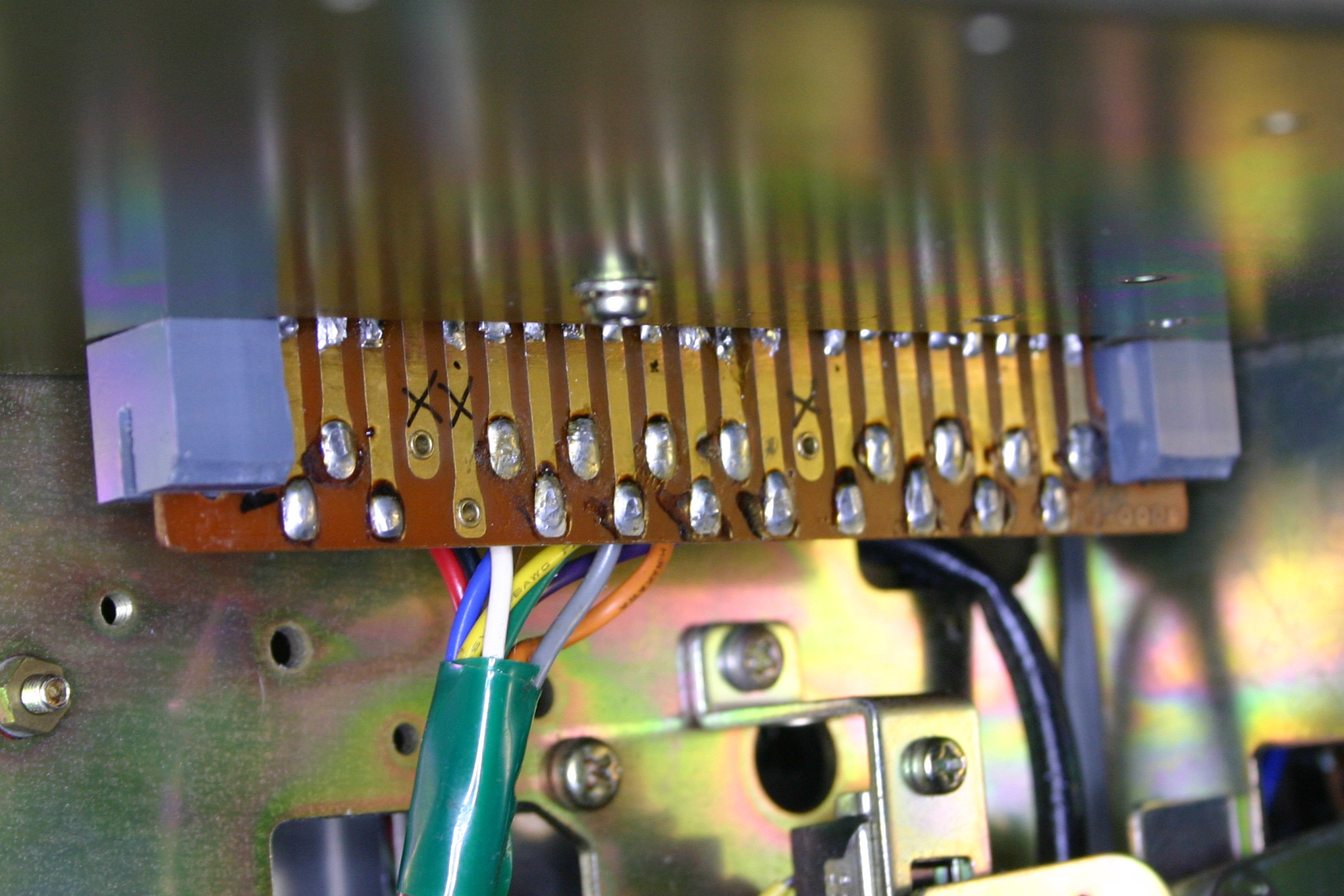 Tjonge die connector zat daar niet voor niets. Nu de draden op de steekprint gesoldeerd zijn zit het wel allemaal erg strak. Die print flubbert fijn tegen het chassis en de isolatietape begint alweer los te laten.