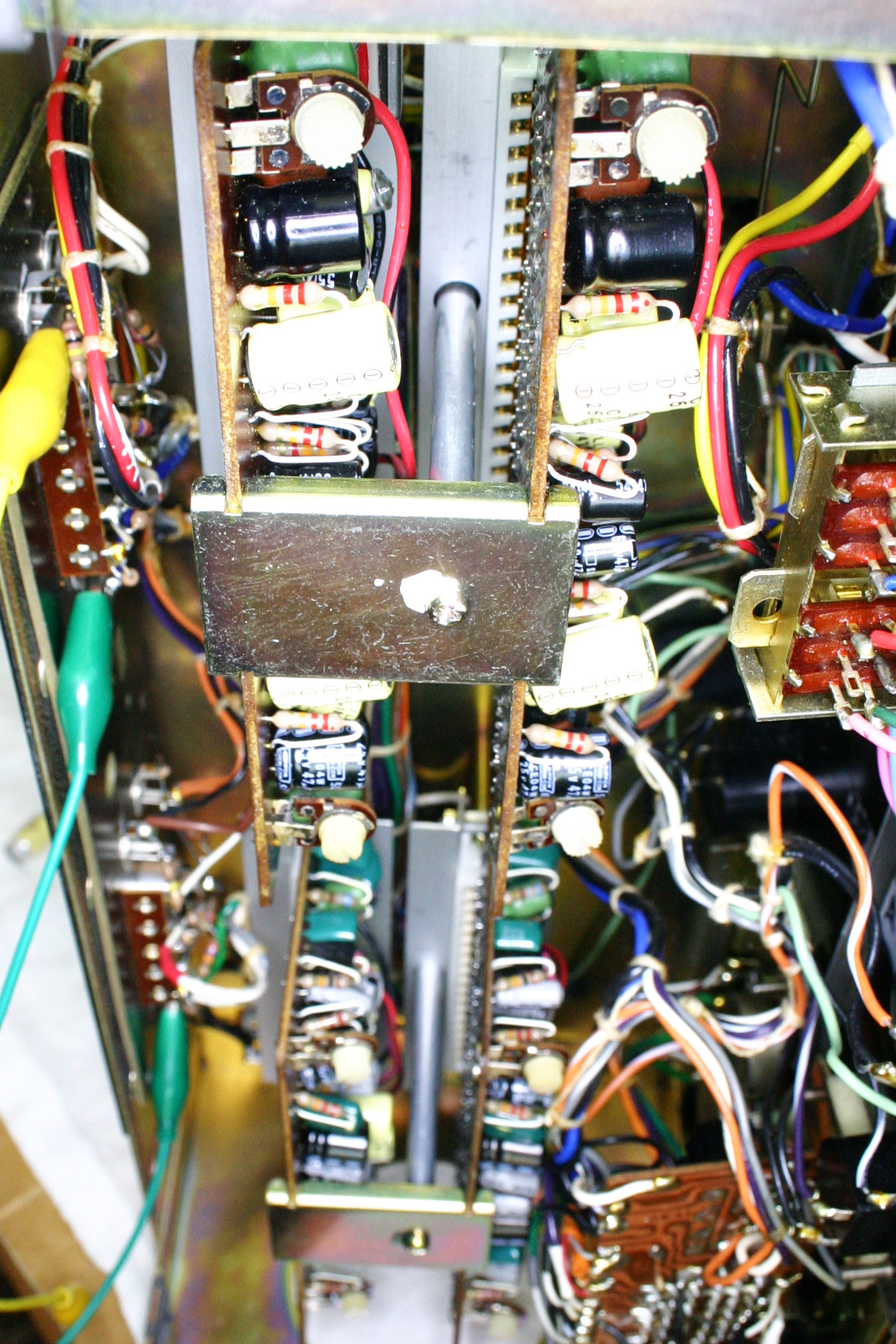 Dan nog een kleinigheid: De VU meters rammelen in het front omdat het schuimrubber vergaan is. Een paar stukjes nieuw schuimrubber lost dat ook op.