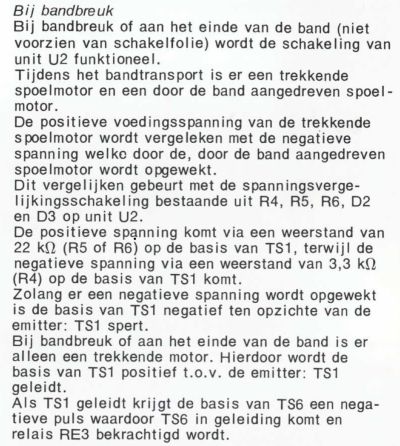 De serie recorders waar de N4506 bij hoort heeft een automatische afslag bij bandbreuk. Bandbreuk komt niet zo vaak voor, maar het werkt ook bij het einde van een band zonder schakelstrip. De recorder stop na 5-10 seconden automatisch als de band “op” is.