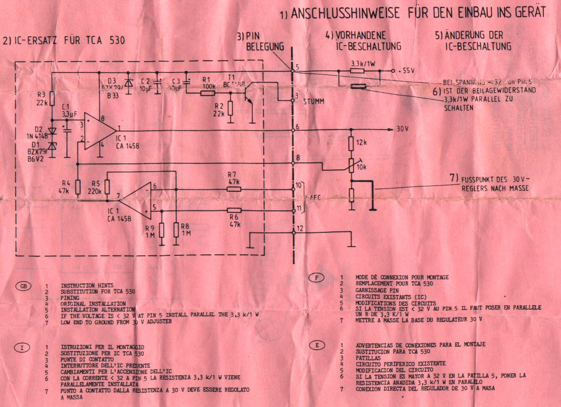 In Grundig en Saba fora 1) zijn enkele vervangingsschakelingen van dit ic te vinden, een daarvan is een originele Grundig vervanging waar zelfs ooit een serviceprintje van is uitgegeven.