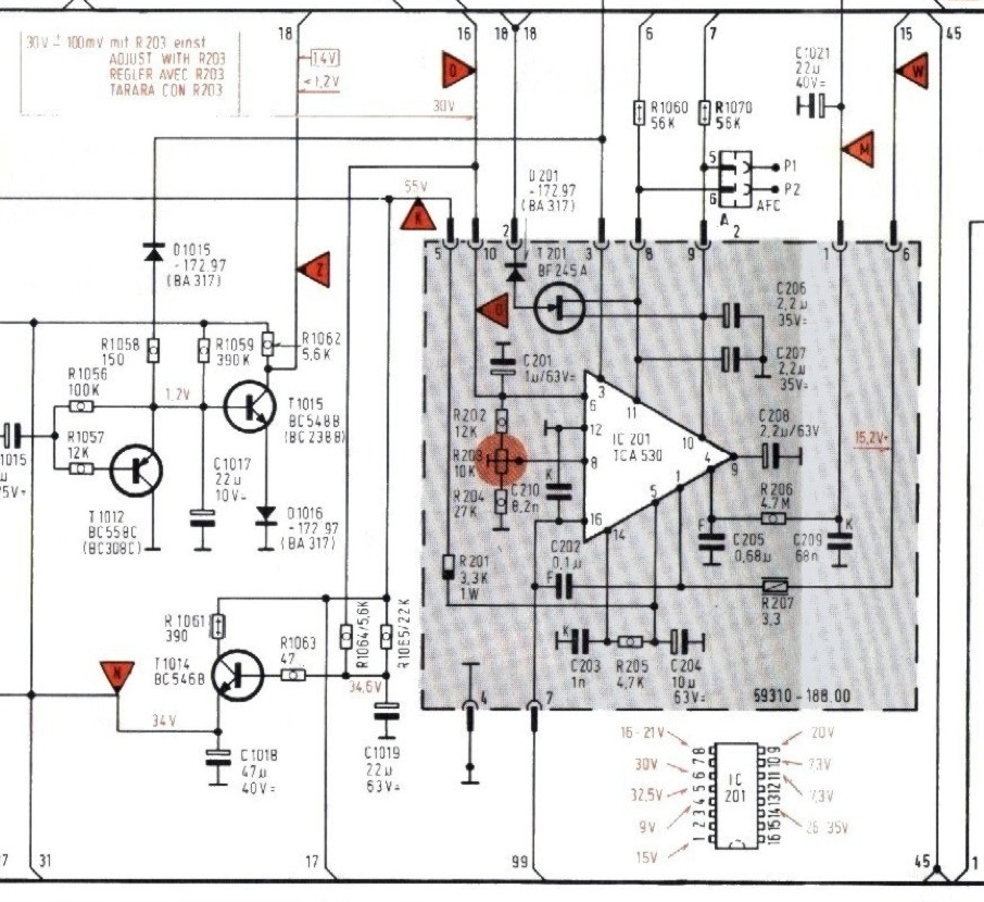 Deelschema van de tuner stabilisator met stabilisatie-ic TCA530.