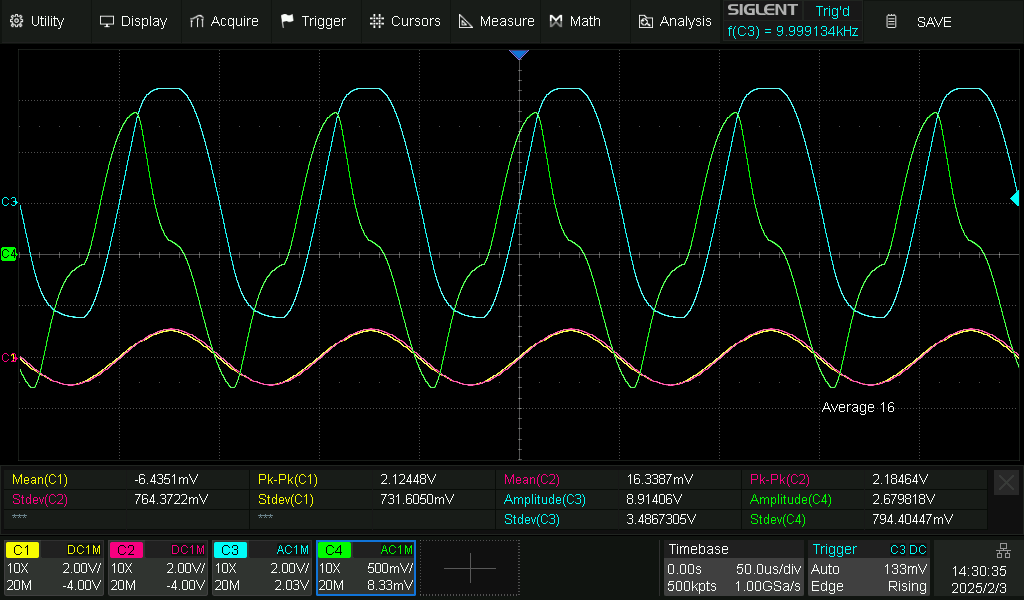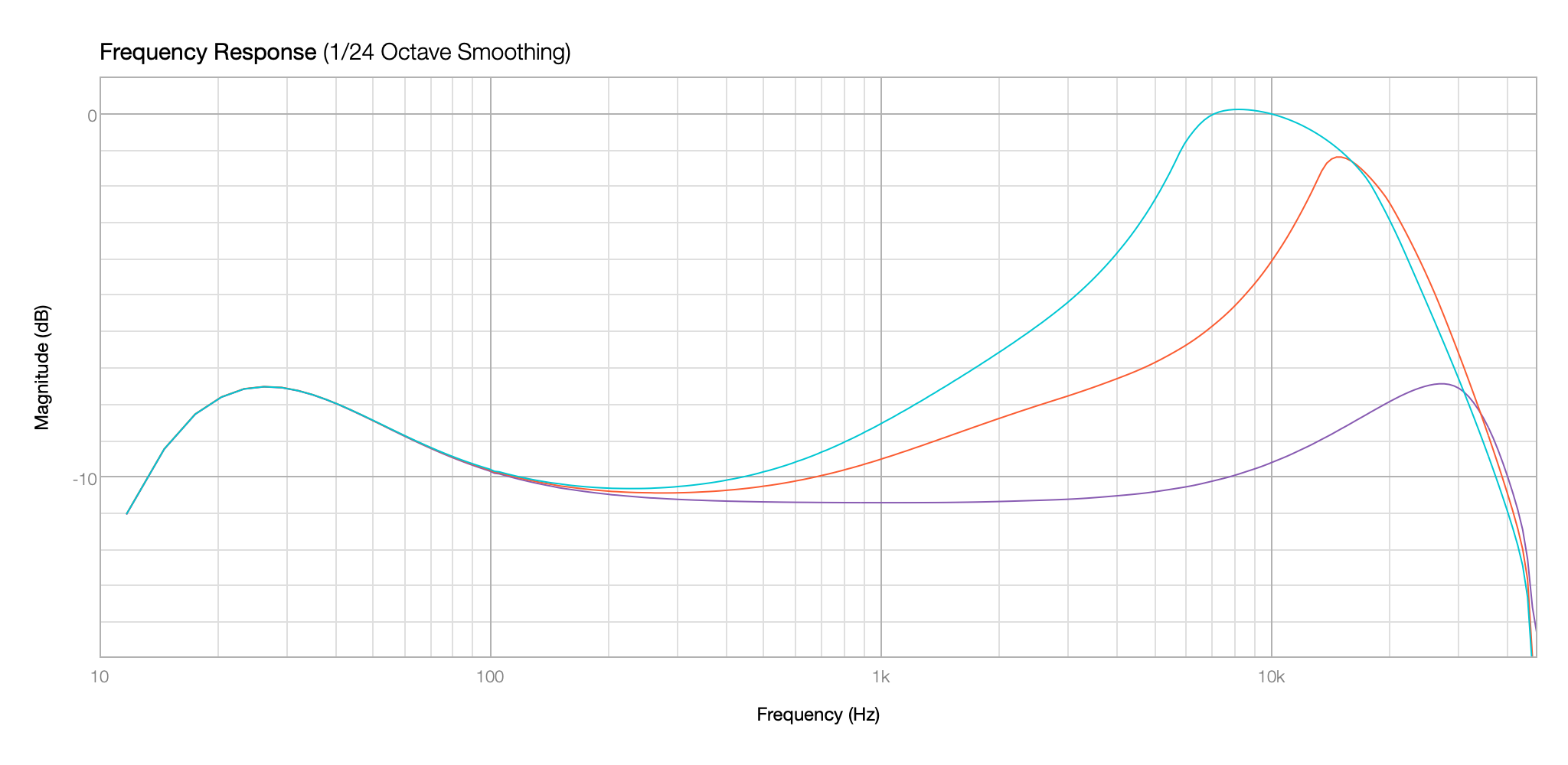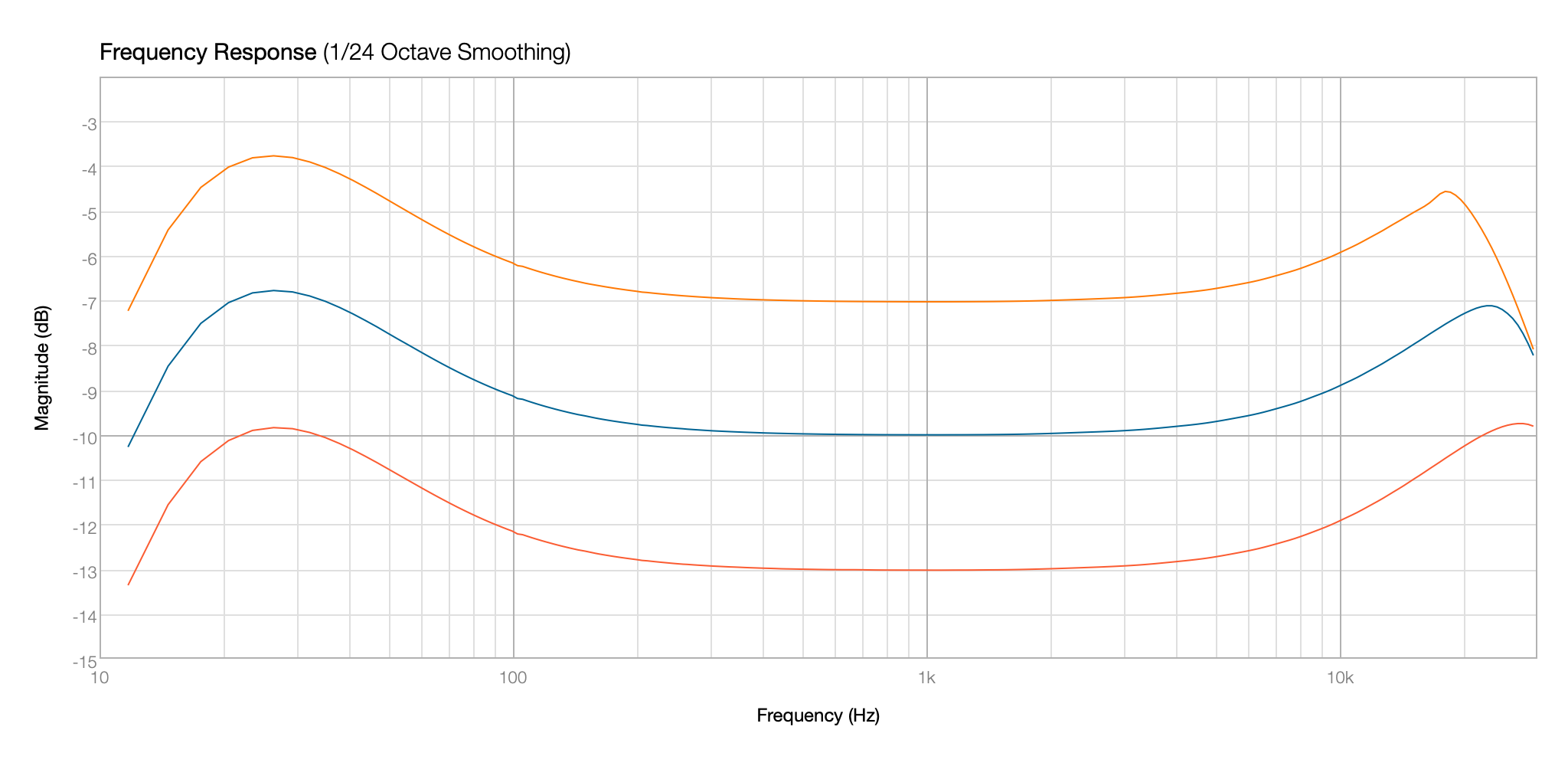 Max signaal bij 10kHz is -8,8dB (min!), direct daarna begint de vervorming. Na 12kHz zakt de amplitude weer.