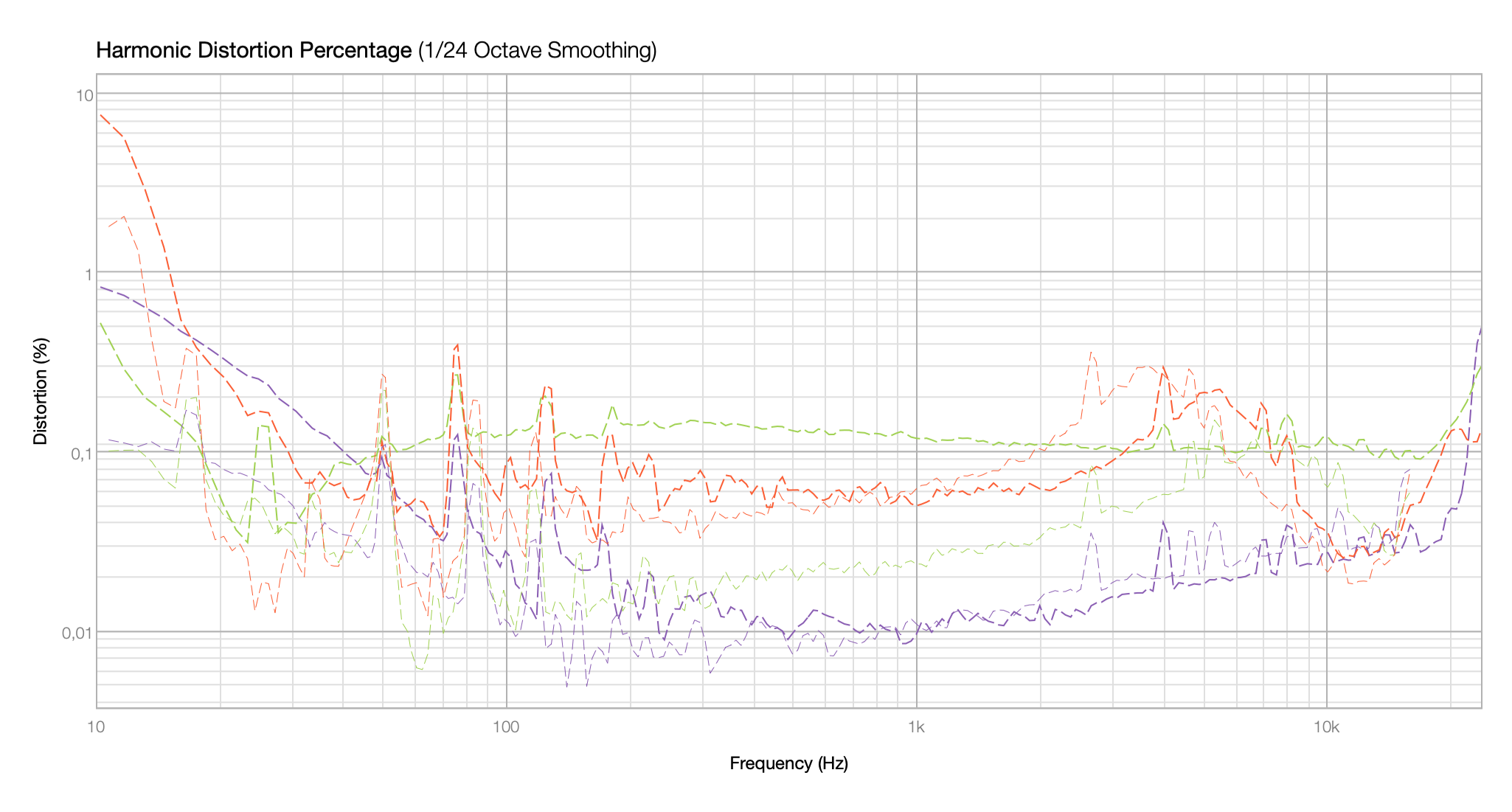 Versterking loopt op met de frequentie. Bij 18kHz is er nog geen vervorming bij 0dB Uitgangssignaal van de kopversterker is dan 1,7Vrms (4,8Vtt)