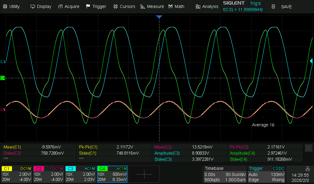 Versterking loopt op met de frequentie. Bij 13kHz is er nog geen vervorming bij 0dB Uitgangssignaal van de kopversterker is dan 3,4Vrms (9,6Vtt)