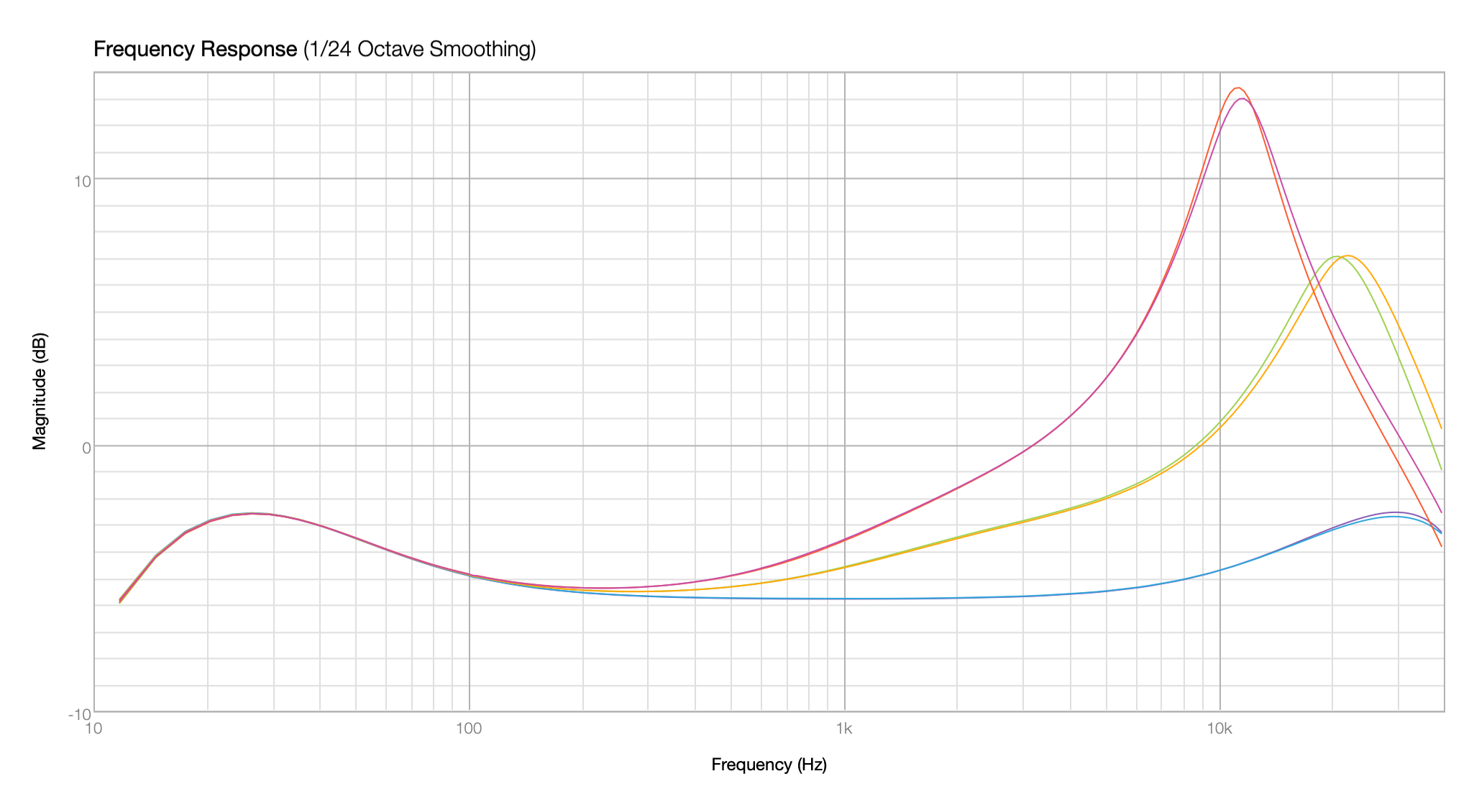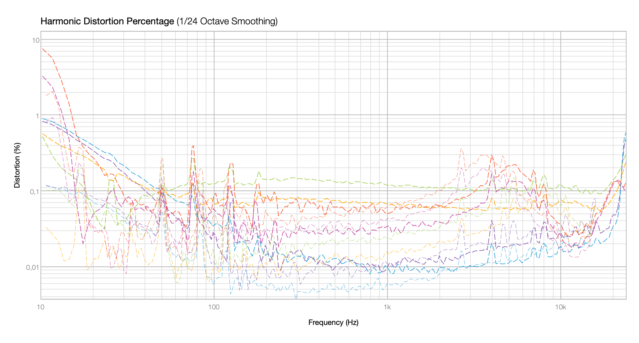 Max signaal bij 10kHz is -8,8dB (min!), direct daarna begint de vervorming. Na 12kHz zakt de amplitude weer.