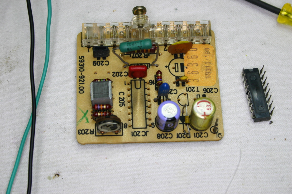 TCA530 vervanging op het printje, van de zijkant.