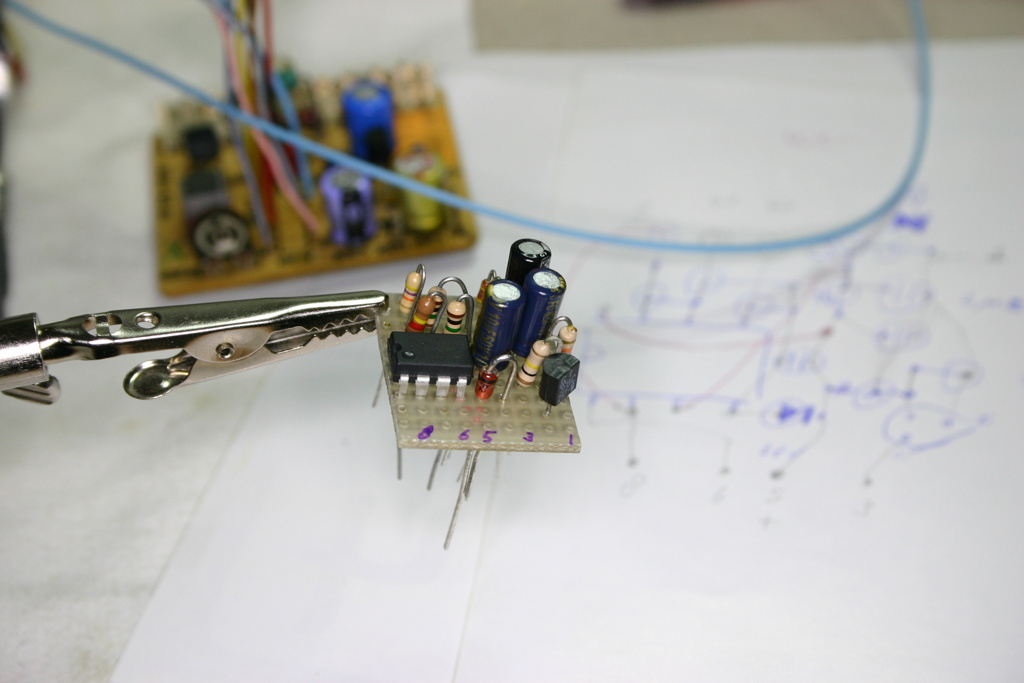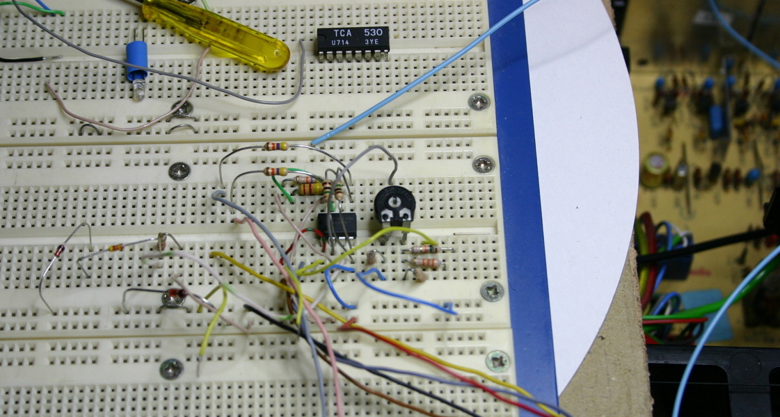 De TCA530 vervanger op het breadboard.